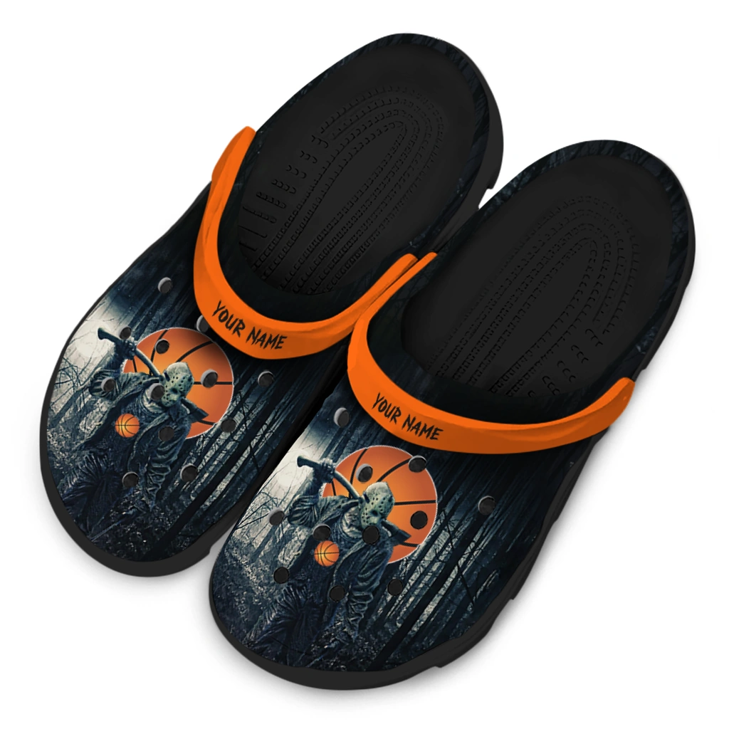 Basketball Logo Clog – Customized Jason Voorhees Orange Black