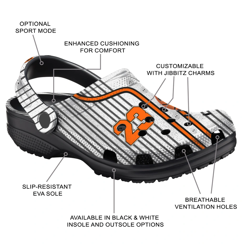 Basketball Logo Clog – Customized Pinstripe Pattern Orange White