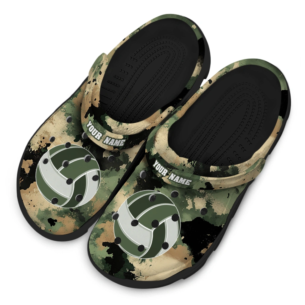 Volleyball Logo Clog – Custom Camouflage Craze Green brings a bold and sporty edge to your casual footwear collection. Featuring a rugged green camouflage pattern paired with a striking volleyball graphic, these unisex graphic clogs are perfect for athletes, sports fans, and anyone who loves a dynamic, outdoors-inspired style. Designed to offer breathable comfort with a customized feel, they seamlessly blend style and function for those who want standout customized foam slides that perform as well as they look.