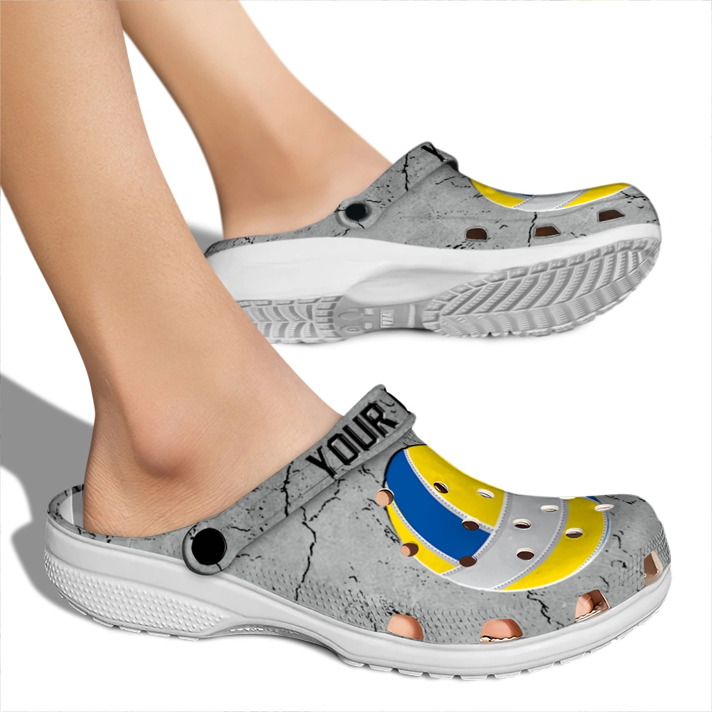Volleyball Logo Clog – Custom Cracked Texture Gray brings a sporty edge to classic footwear with its rugged cracked texture and bold volleyball graphic. Perfect for athletes, volleyball enthusiasts, or anyone who loves unisex graphic clogs with a modern twist, these clogs combine personalized style with breathable comfort. Designed to make a statement both on and off the court, they are an ideal choice for those seeking customized foam slides that stand out while delivering everyday ease.