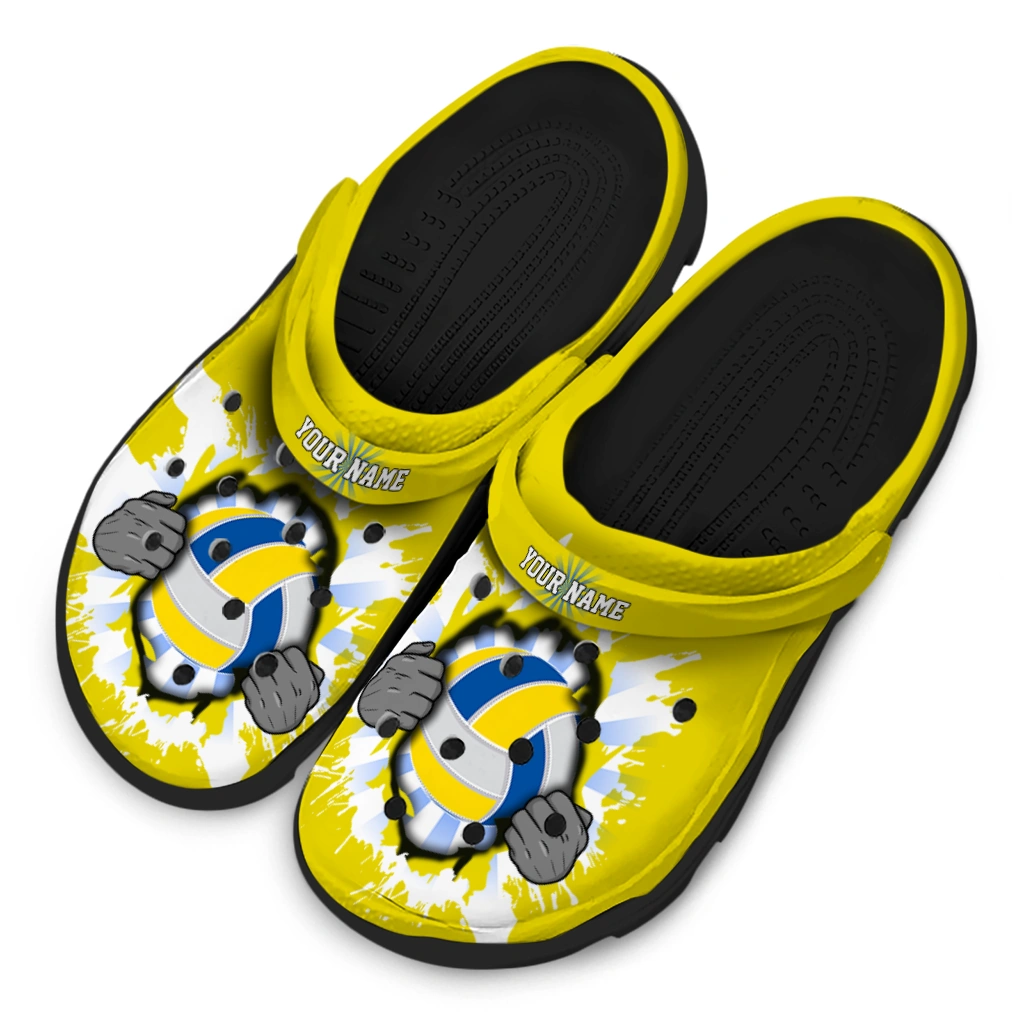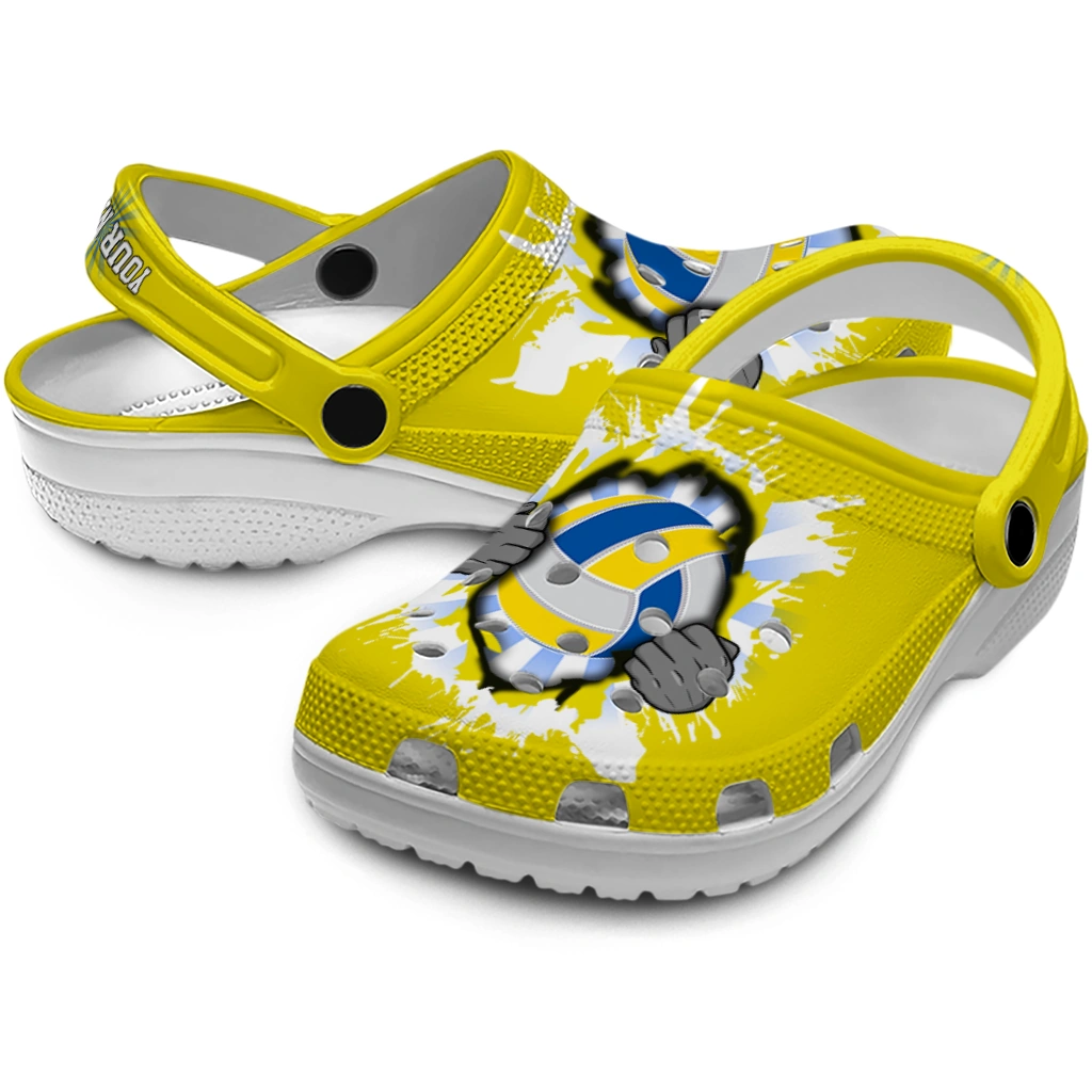 Volleyball Logo Clog – Custom Gripping Hand Yellow White