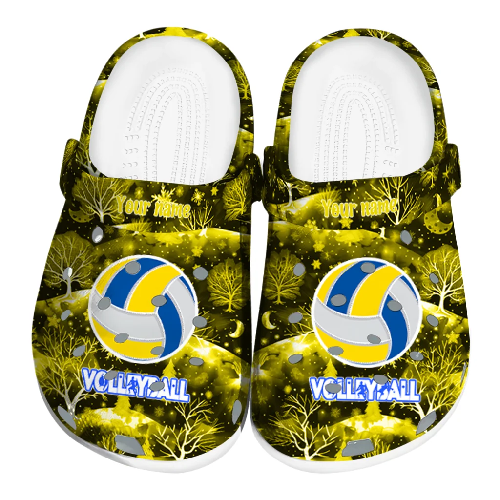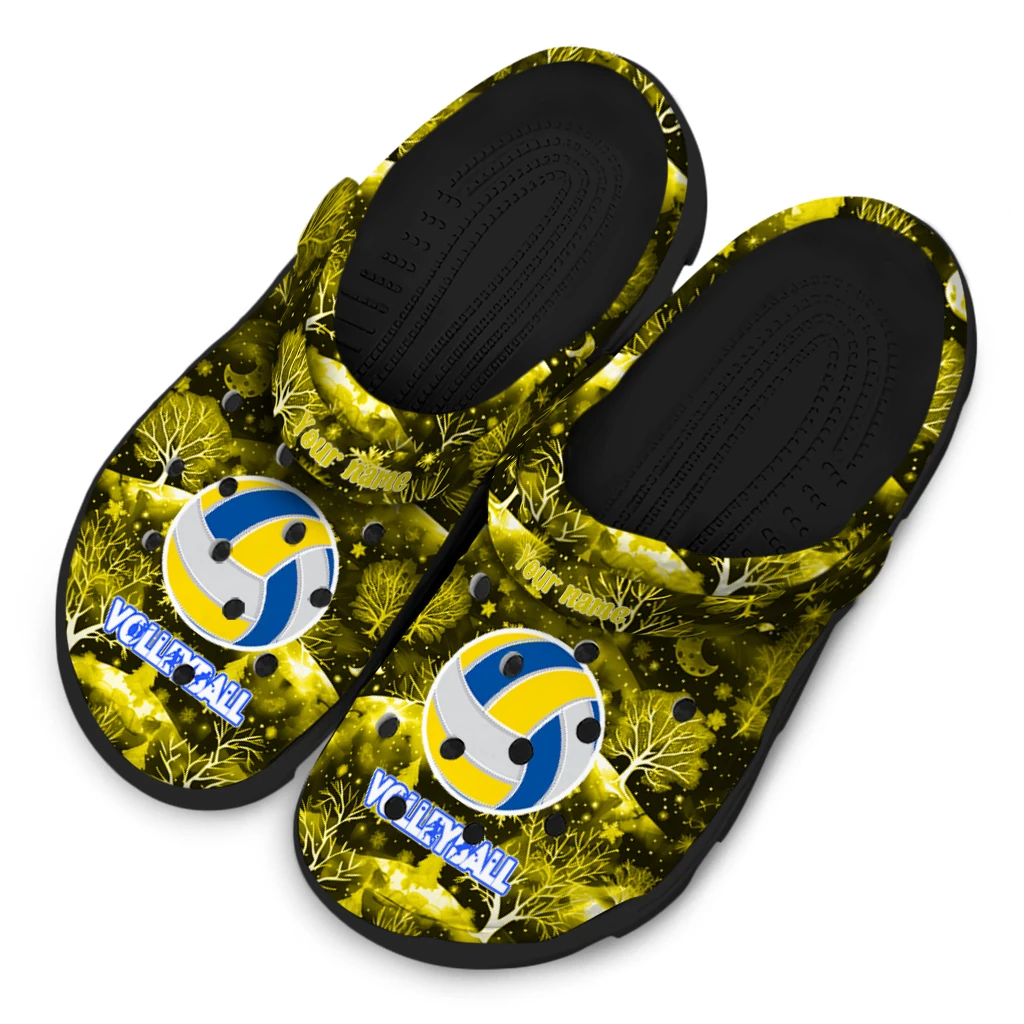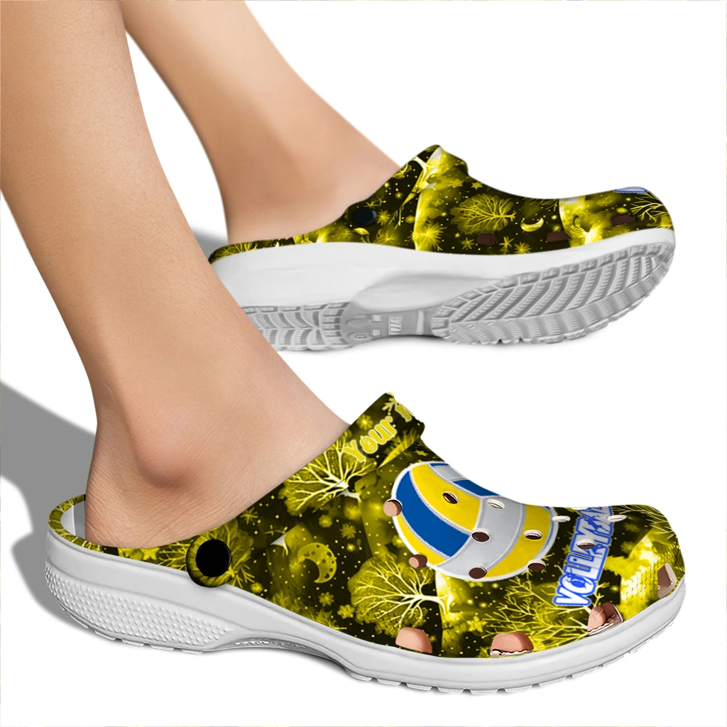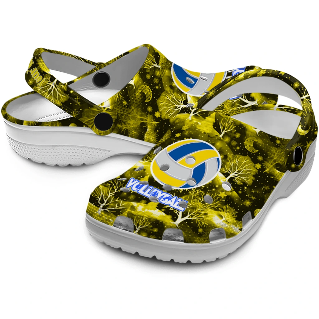 Volleyball Logo Clog – Custom Snowy Hills Yellow brings a fresh twist to unisex graphic clogs with its vibrant yellow and blue volleyball emblem set against a dreamy snowy hills backdrop. This design captures the dynamic spirit of volleyball enthusiasts and those who appreciate custom footwear with a sporty edge and artistic flair. Perfect for athletes and hobbyists alike, these clogs combine breathable comfort with a bold aesthetic that stands out on or off the court. Whether you’re relaxing after a game or sporting your passion daily, these customized foam slides deliver style and function in every step.