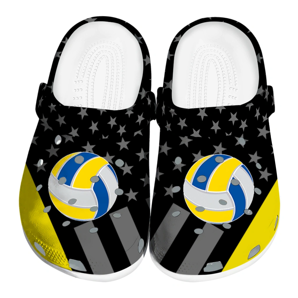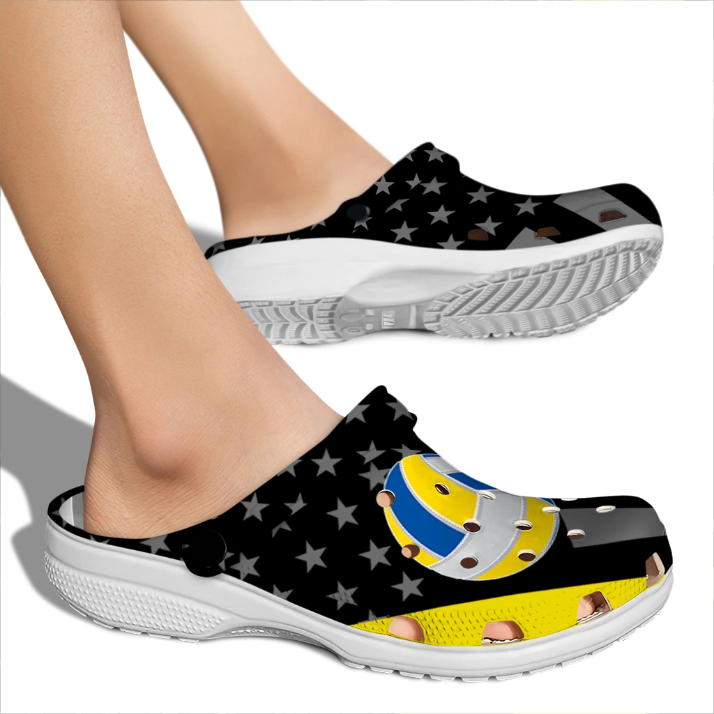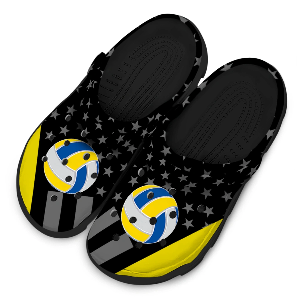 Volleyball Logo Clog – Stellar Stripes Theme Yellow Black celebrates the dynamic energy and team spirit of volleyball with a bold design that appeals to athletes and sports enthusiasts alike. Featuring a sleek combination of black with striking yellow accents and star motifs, these unisex graphic clogs offer a modern, sporty vibe perfect for post-game comfort or casual wear. Whether you’re heading to the court or relaxing off-duty, these customized foam slides provide breathable comfort and a standout look for anyone who loves to showcase their passion.